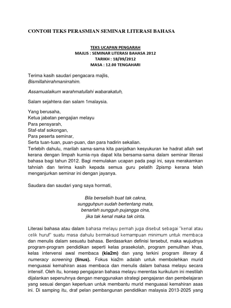 TEKS UCAPAN PERASMIAN YAB Dato Hj. Agresif dalam mempelajari ilmu untuk mempertingkatkan kecemerlangan diri contohnya melalui majlis-majlis ilmu atau kursus seperti ini. Ucapan perasmian pn nor asikin demikianlah tadi ucapan perasmian yang telah.